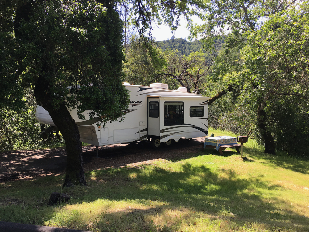 It’s a beautiful park with beach access on the Russian River. The sites are well-spaced winding up the hillside, so we’ve rarely had the same wooded view twice. Cloverdale is only a few miles away and is one of those charming small towns where everyone seems to know each other. From here, you can explore wineries to the south, or travel north to the charming even-smaller town of Hopland or the whale-watching mecca of Mendocino.