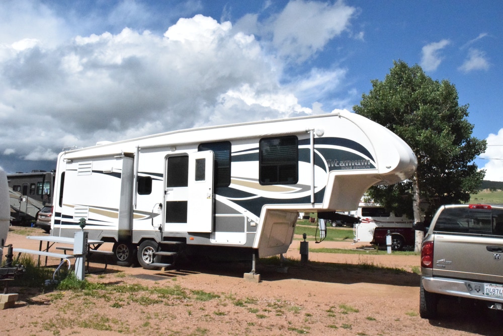 Our RV is a 33' Fifth Wheel made in Canada. It's a Titanium that allows us to spend many months on the road. She's pulled by a Dodge Ram 2500 with beefed up load balancing.